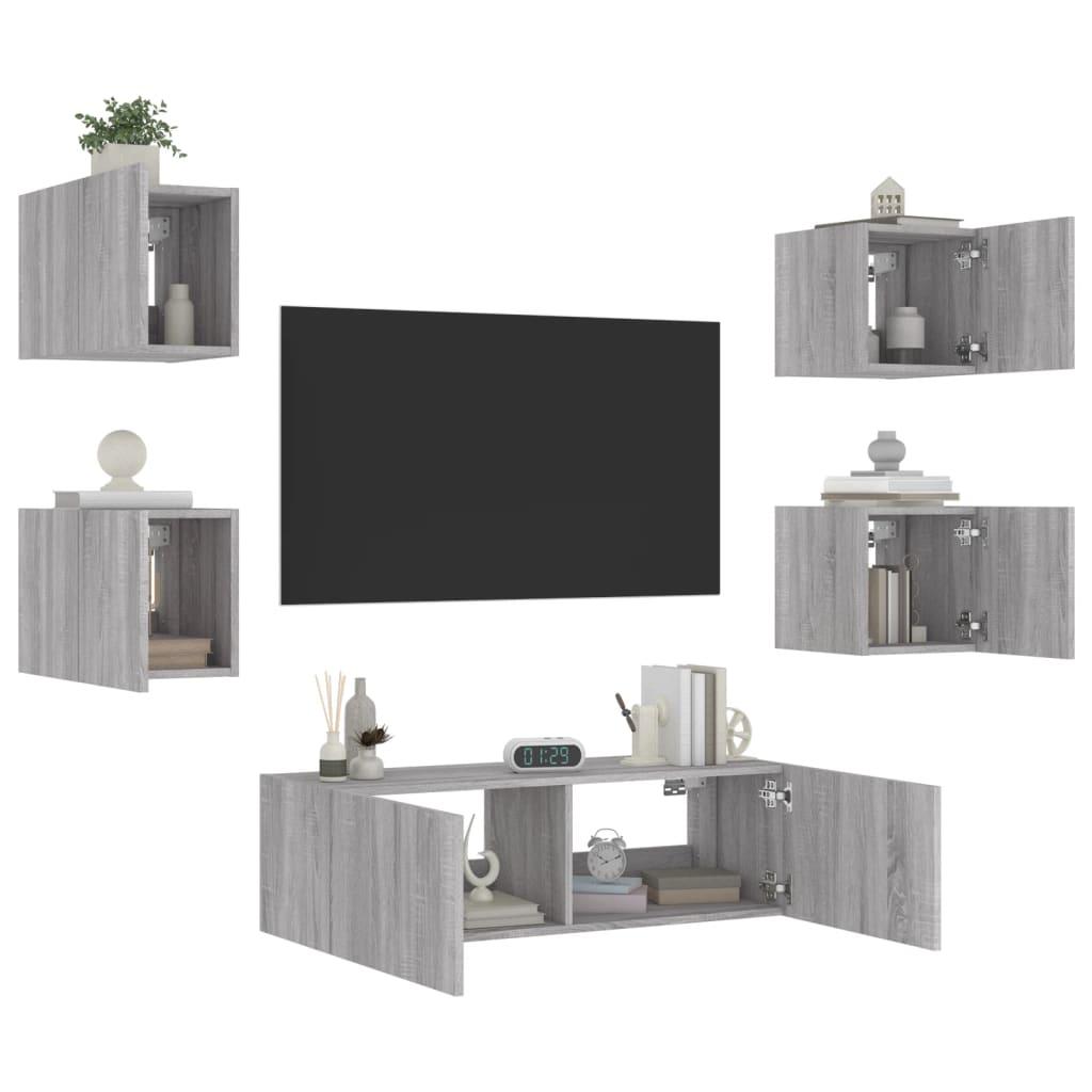 Væghængt tv-møbel 5 dele LED-lys grå sonoma-eg