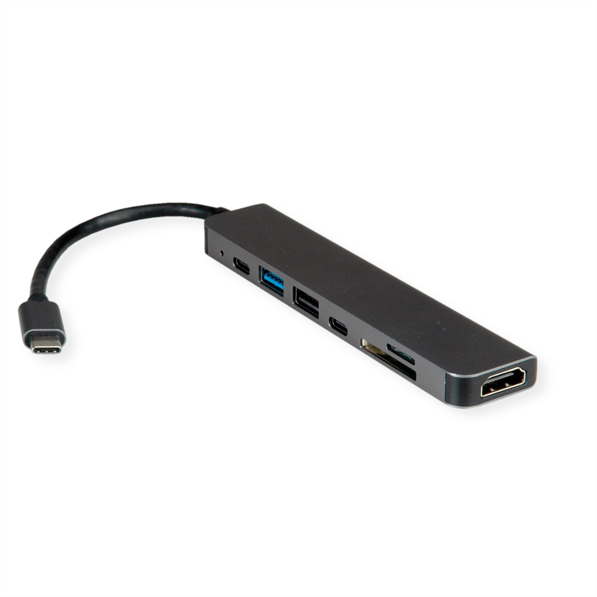VALUE USB Typ C Dockingstation, HDMI 4K60, 2x USB2.0 (A+C) + 1x USB3.2 Gen1 (A), 1x PD, 1x SD/TF