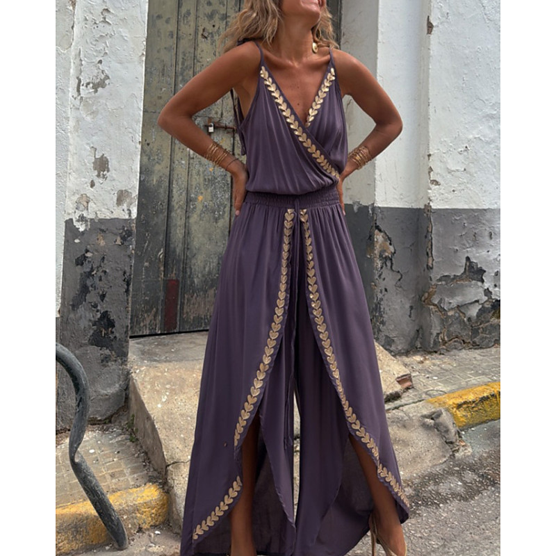 Women's Normal Jumpsuit Streetwear Color Block Sleeveless V Neck Patchwork Street Daily Regular Fit Purple Summer