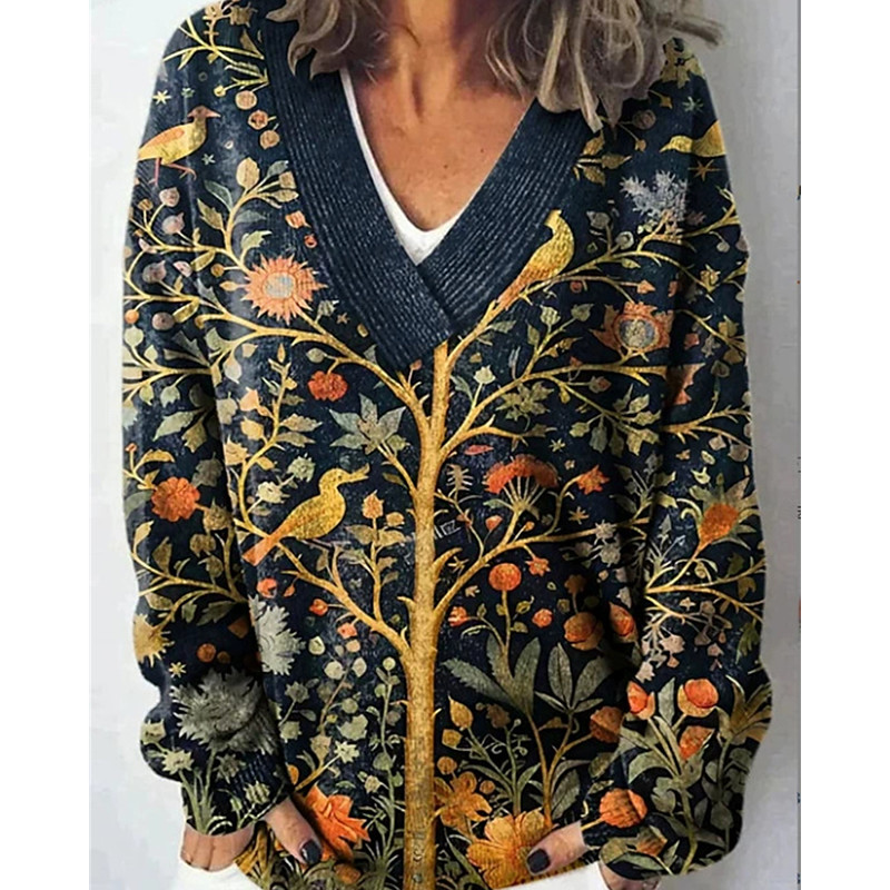 Women's Blouse Dressy Tops Color Block Plain Elegant Vintage Ladies Long Sleeve V Neck Regular Tops Work Daily Holiday Patchwork Blue Fall Winter