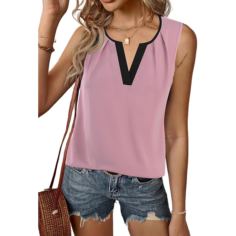 Women's T Shirt Color Block Casual Sleeveless V Neck Regular Tops Daily Going out Weekend Patchwork Black White Pink off-white Summer Spring