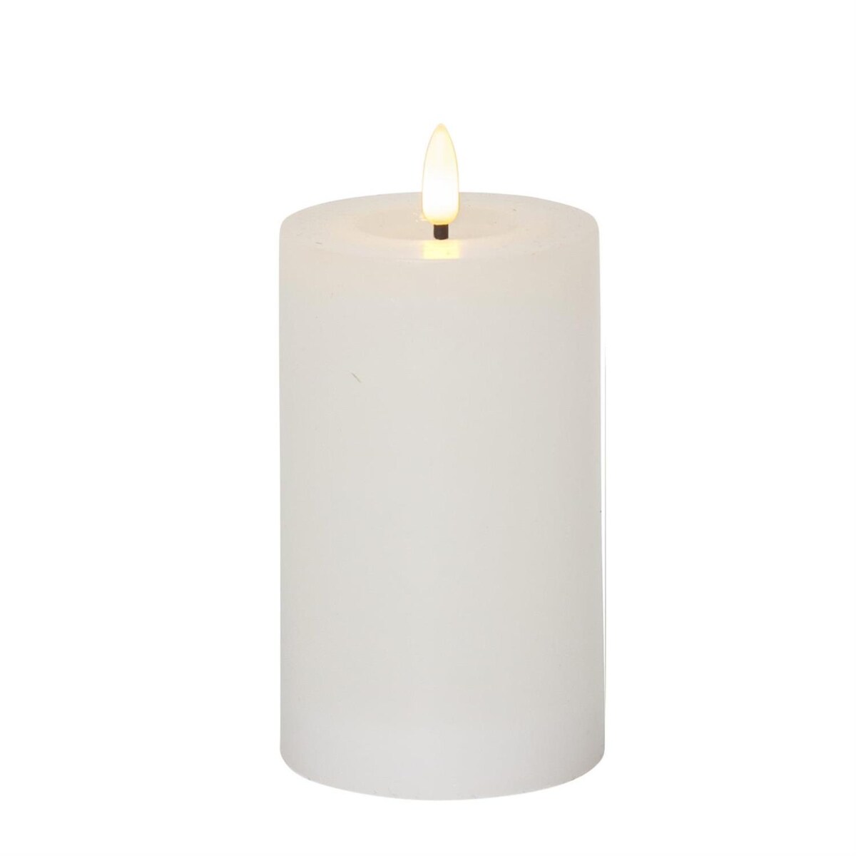 LED Kerze LINA Echtwachs realistische 3D Flamme Wachsspiegel H: 15cm weiß