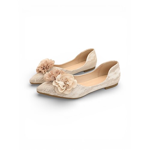 ballerine da donna color champagne con fiori e finitura testurizzata, eleganti scarpe da sposa per la sposa per un matrimonio all'aperto in giardino
