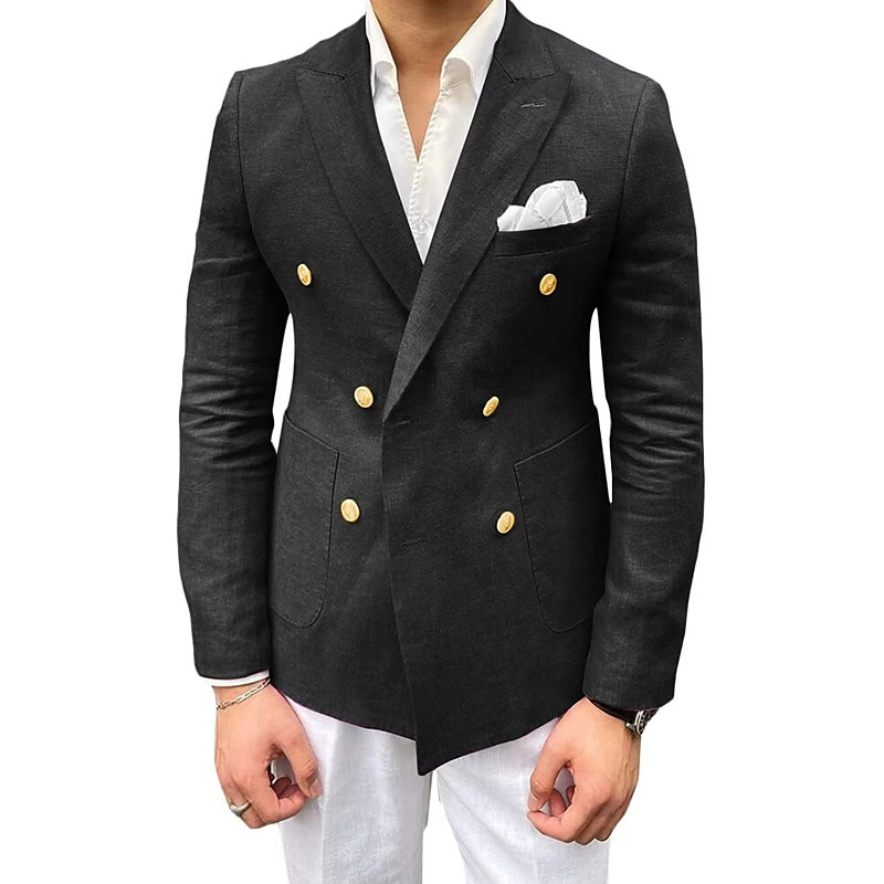 Men's Linen Blazer Sport Coat Closure collar Fashion Casual Solid Colored Black Pink khaki Tailored Fit Double Breasted Six-buttons