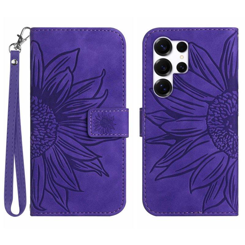 Samsung Galaxy S26 Ultra Plånboksfodral Konstläder Blommönster - Mörklila