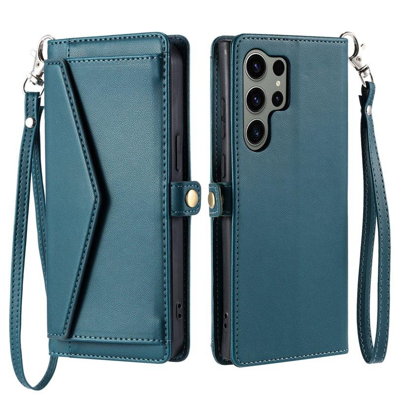 Samsung Galaxy S26 Ultra Fodral Äkta Läder Med Handrem - Svartgrön
