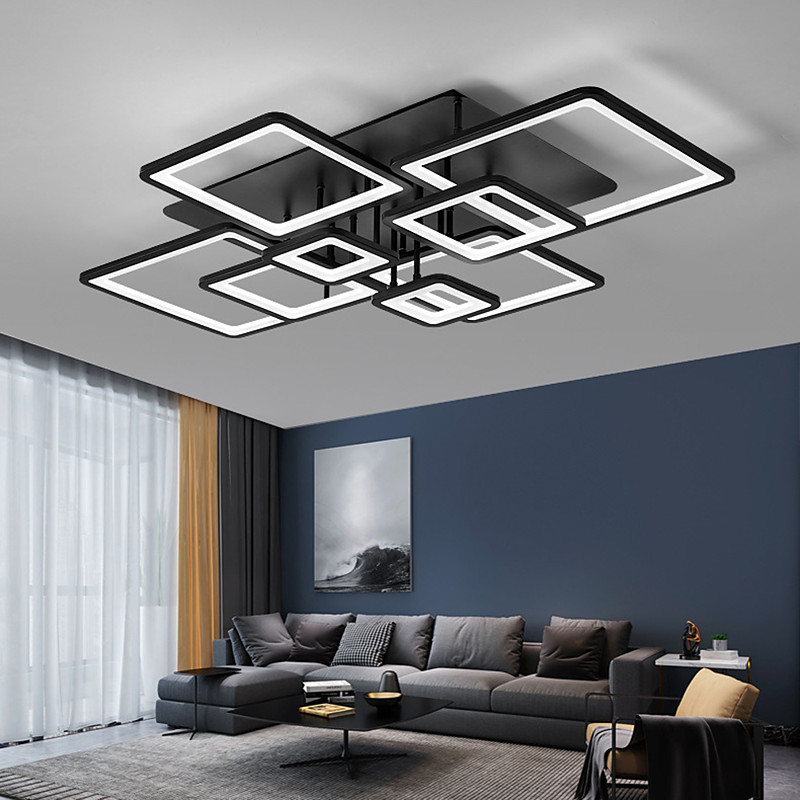 Multi Layer Modern LED Ceiling Light APP Dimmable Flush Mounted Light Black Square Ceiling Lamp Suitable for Bedroom Living Room Dining Room AC110V AC220V