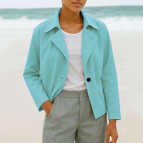 Damen Freizeitjacke Bequem Atmungsaktiv Tasche Mode Lässig Einfach Urlaub Straße Lässig Alltagskleidung Offene Vorderseite Kurz Umlegekragen Normale Passform Langarm Oberbekleidung Marineblau Schwarz
