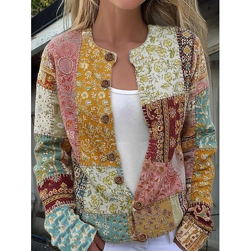 Per donna Cardigan Vintage Quotidiano Stile Etnico Floreale A Coste Girocollo Bottoni Stampato Manica Lunga Top Regolari Maglia All'aperto Quotidiano Data Verde Primavera Autunno