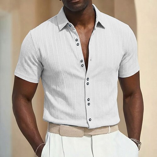 Per uomo Camicia Camicia casual Camicia da Spiaggia Camicia con Bottoni Camicia Jacquard Blu Nero Bianco Blu marino Kaki Manica Corta Semplice Bavero Casuale Abbigliamento casual alla moda Bottoni