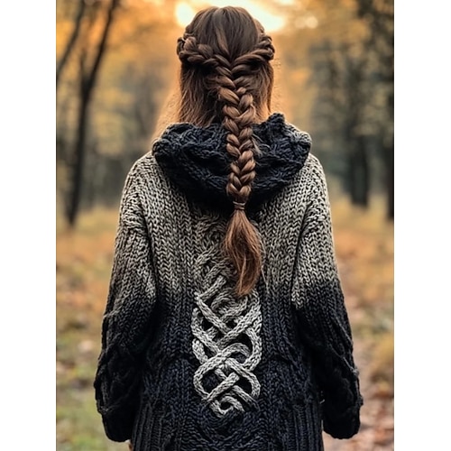Per donna Cardigan Quotidiano Casual Grafico Geometrico A Coste Con Cappuccio Patchwork Tasca Bottoni Manica Lunga Top lunghi Maglia All'aperto Weekend Nero Blu Autunno Inverno