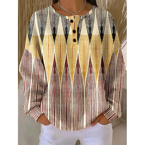 Per donna Felpa Pullover Grafico Geometrico Caldo Classico Casual Manica Lunga Girocollo Top Regolari Streetwear Abbigliamento Quotidiano Casuale Bottoni Stampato Nero Rosso Verde Kaki Primavera