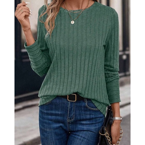 Per donna Felpa Casual Morbido Colore Puro A Coste Girocollo Lavorato a maglia Manica Lunga Top Regolari Maglia Quotidiano All'aperto Weekend Nero Vino Autunno Inverno