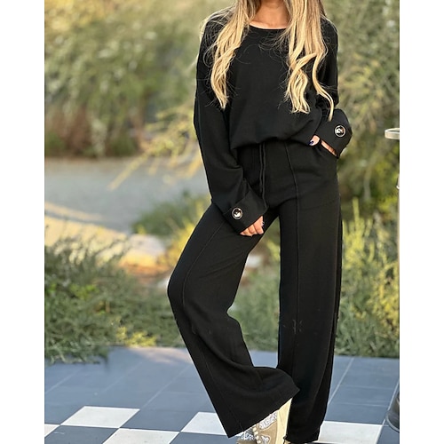Per donna Moda Streetwear Maglietta Set di Pantaloni Bolero Top Manica Lunga Girocollo Semplice Casuale Quotidiano All'aperto Nero Bianco Giallo Primavera Vestibilità regolare