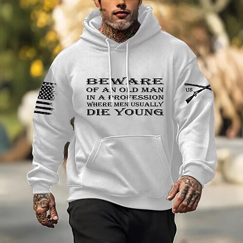 Per uomo Lettera Stampe Grafiche Bandiera Nazionale Felpa con Cappuccio Moda Quotidiano Casual Manica Lunga Con Cappuccio Vacanza Feste Abbigliamento casual alla moda Festival Nero Bianco Blu reale