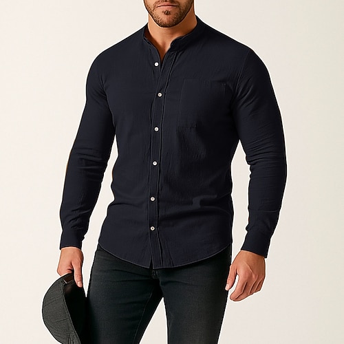 Per uomo Camicia Camicia di lino Camicia di cotone Semplice Quotidiano Abbigliamento casual alla moda Nero Bianco Blu marino Marrone Manica Lunga Colletto alla coreana Primavera Autunno Abbigliamento
