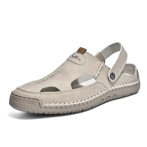 Sandali da pescatore da uomo color kaki a punta chiusa, scarpe comode da passeggio con cinturino posteriore, calzature estive casual e traspiranti per isole e crociere, viaggi in resort, passeggiate sul ponte e tempo libero in costa.