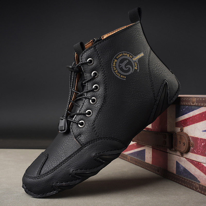 Men's Brown Faux Leather Slip-On Winter Shoes, Warm and Comfortable, Fleece Lining for Extra Warmth, Perfect for Winter Days and Casual Outings