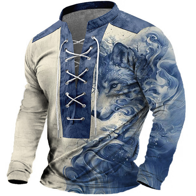 Men's Wolf Sweatshirt Sweatshirt Long Sleeve Sweatshirt Stand Collar Fashion 3D Print Sports Outdoor Holiday Drawstring Winter Spring Fall