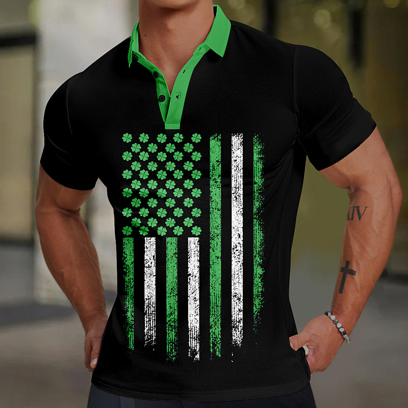 Men's Flag Golf Shirt Short Sleeve Polo Shirts Collared Shirts Casual Outdoor Daily Wear 3D Print Summer Spring Fall Black