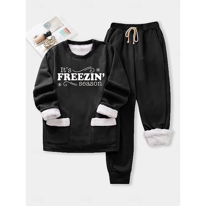 Women's Fleece Lined Pullover Sweatshirt Pajamas Yes Im Cold Graphic Letter Warm Casual Fuzzy Print Casual Comfrt Hoodie Long Sleeve Micro-elastic Fall Winter Fall Winter Breathable Soft Fabric