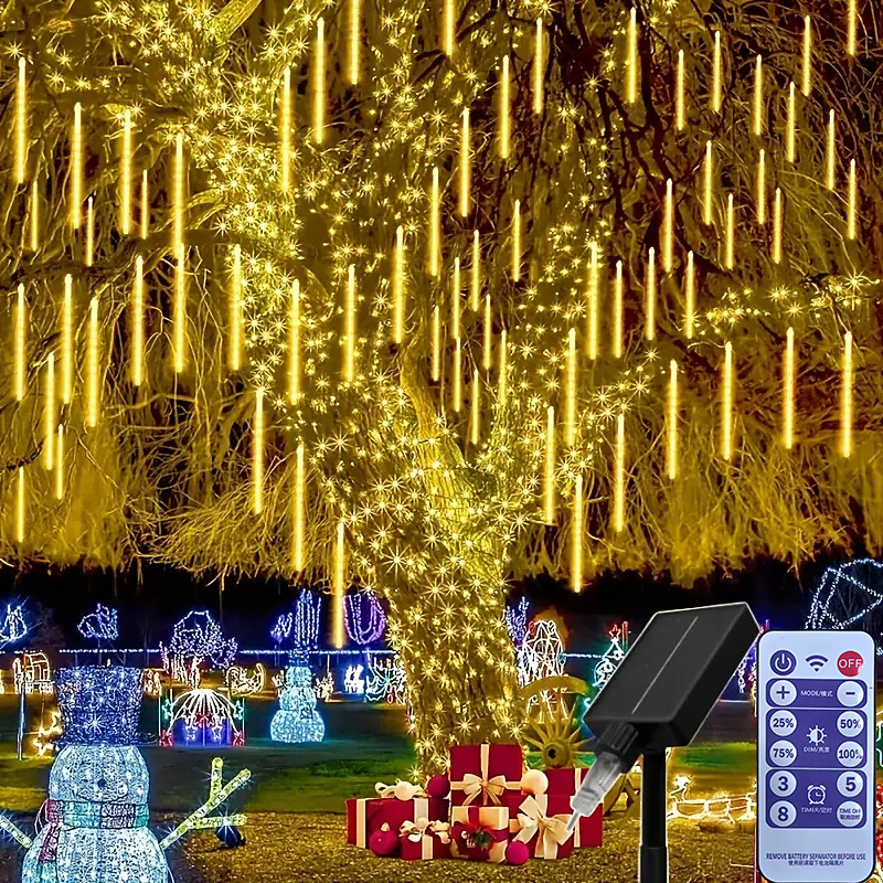 2 In 1 Outdoor Solar Meteor Shower Light String 16Tubes 384 LED Beads Indoor and Outdoor Courtyard Eaves Balcony Porch Wedding Festival Atmosphere Decorative Lights Remote Control