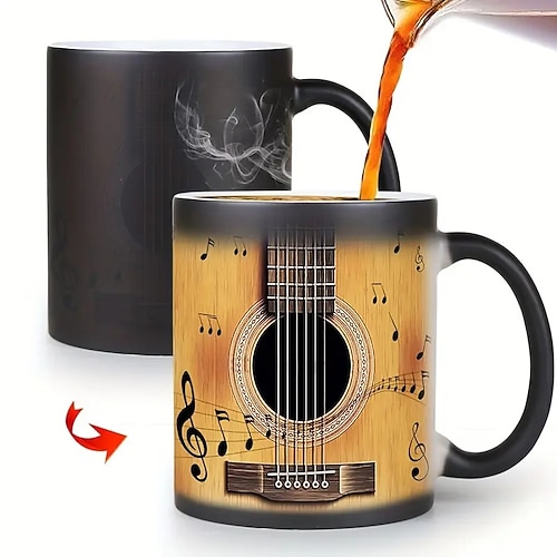 Tazza magica a forma di chitarra che cambia colore, tazza in ceramica da 350 ml, riutilizzabile, lavabile a mano, riciclabile, tema Natale, Halloween, Ringraziamento, San Valentino, Festa della mamma,