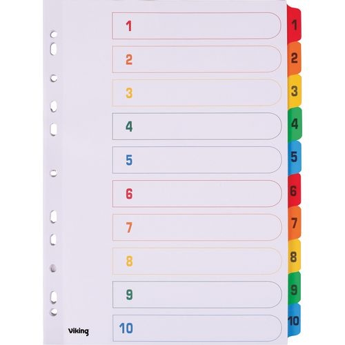 Viking Mylar 1 bis 10 Zahlenregister DIN A4 Farbig sortiert 10-teilig Pappkarton 11 Löcher