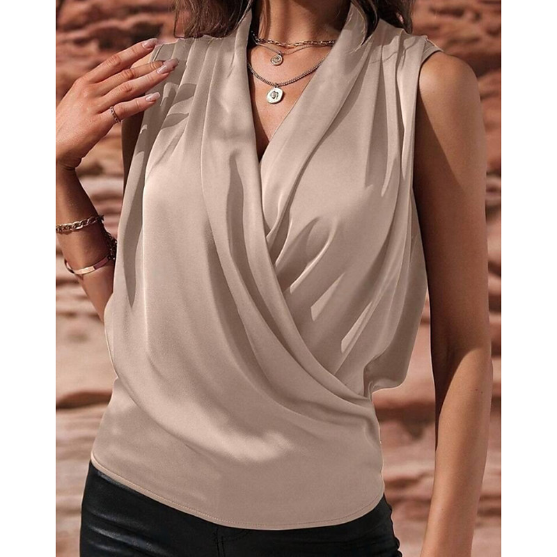 Women's Shirt Elegant Satin Blouse Plain Vintage Stylish Sleeveless V Neck Regular Tops Daily Holiday Going out Ruched Draped Black Champagne Summer Spring