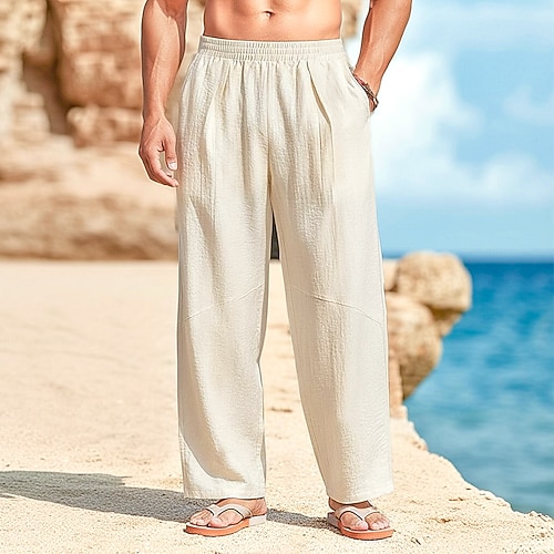 Per uomo Pantaloni di Lino Pantaloni Pantaloni Estivi Pantaloni da Spiaggia Pieghettato Elastico in vita Gamba Dritta Semplice Comodità Traspirante Lunghezza intera Affari Quotidiano Ferie Moda Stile