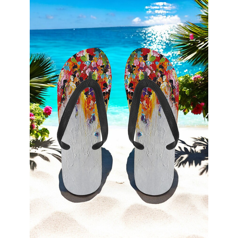 Women's Colorful Floral Flip-Flops - Vibrant Bohemian Beach Sandals for Summer Pool Resort Wear