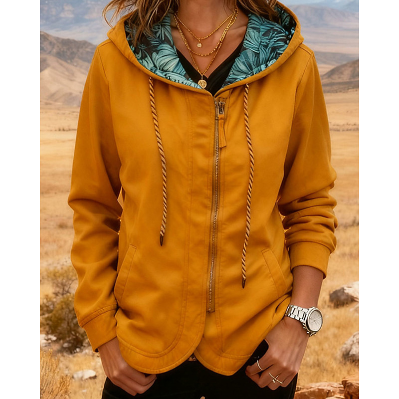 Women's Zip Up Hoodies Zip Up Sweatshirts Plain Elegant Warm Fashion Long Sleeve Hooded Regular Tops Home Work Street Drawstring Patchwork Zipper claret Navy Black Yellow Army Green Fall Winter