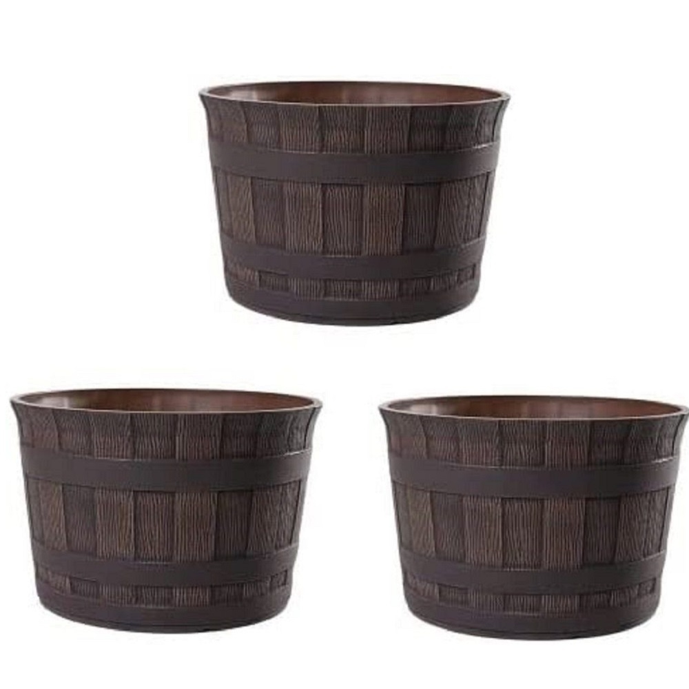 H&D Manufaktur Jinfa 3er-Set Blumenkübel aus Kunststoff in Holzoptik | Farbe: Kastanie | Design: Barrique | Ø 36 cm