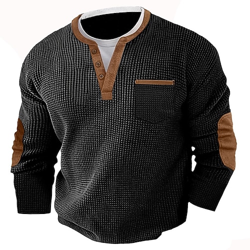 Herren Henley Hemd T-Shirt Langarmshirt Langarm Henley Herbst Winter Retro Mode Designer Mode Jahrgang Urlaub Straße Ausgehen Dunkel Braun Marineblau Schwarz Top T-Shirt für Herren