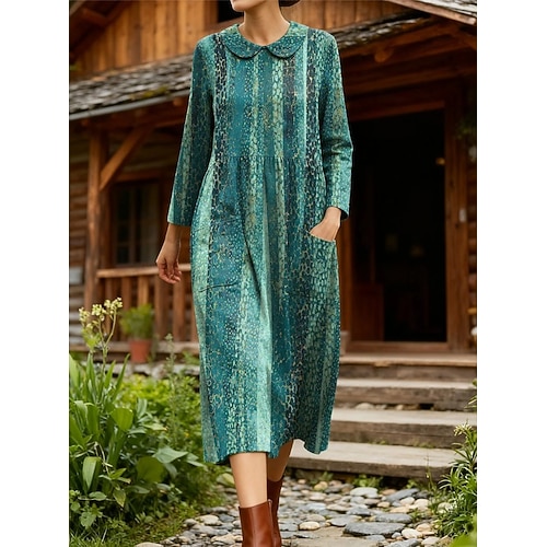 Abito midi donna Abito casual Abito invernale Abito a dondolo Moda Modesta Formale Outdoor Festa Vestibilità regolare Floreale Manica lunga Collo a giro Verde Primavera Autunno Inverno