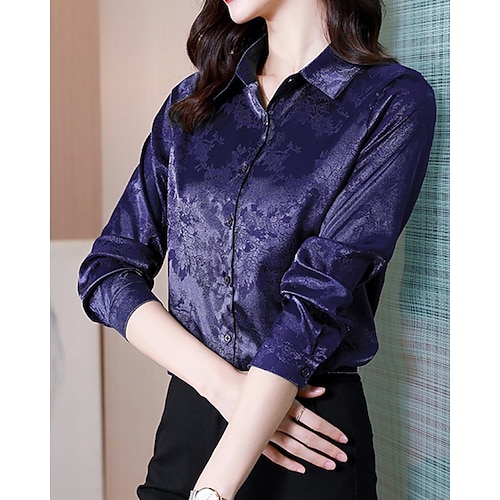 Per donna Camicia Elegant Raso/Satin Blusa Semplice Elegante Casual Manica Lunga Colletto a Camicia Top Regolari Ferie Uscire Bottoni Blu Nero Bianco Verde Beige Primavera Autunno