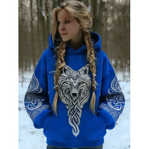 Per donna Felpa con cappuccio Grafico Animale Tribale Vintage Casual Boho Manica Lunga Con Cappuccio Top Regolari Casuale Streetwear Abbigliamento Quotidiano Stampato Tasca Frontale Blu Nero Marrone