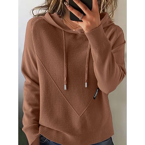 Per donna Felpa Casual Morbido Colore Puro A Coste Con Cappuccio Lavorato a maglia Manica Lunga Top Regolari Maglia Quotidiano All'aperto Weekend Blu Nero Autunno Inverno