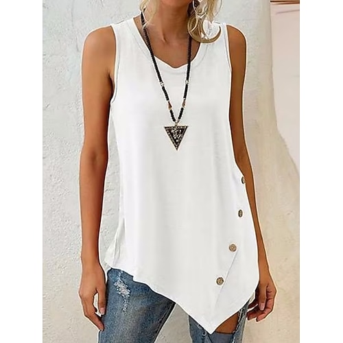 Per donna Canotta a canotta Tinta unica Quotidiano Elegante Essenziale Senza Maniche Girocollo Top lunghi Quotidiano Bottoni Nero Bianco Vino Grigio Estate Primavera