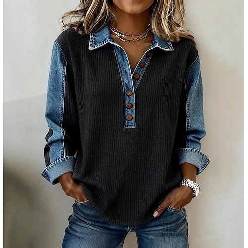 Per donna Tunica Vintage Elegante Manica Lunga Top Regolari Nero Grigio scuro Estate Primavera