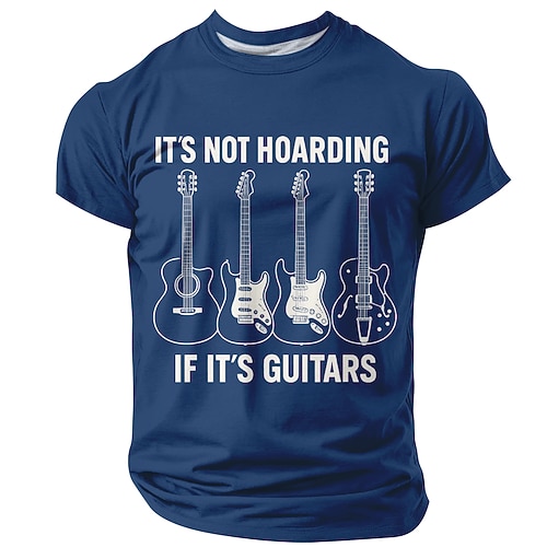 Herren Gitarre Lustiger Slang T Shirt Kurzarm T-Shirt 3D-Druck Rundhalsausschnitt Hemd Mode Täglich Täglich Straße Blau Schwarz Rote Sommer Frühling Bekleidung S M L XL XXL XXXL