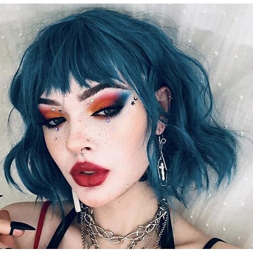 parrucca bob ondulata viola verde rosa con frangia parrucca viola ombre naturale capelli sintetici lunghezza delle spalle parrucche corte ricci per le donne