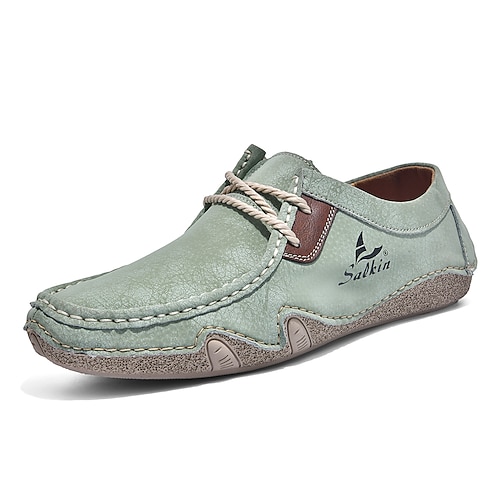 mocassini casual da uomo verde chiaro con lacci, scarpe da passeggio morbide e comode, calzature vintage eleganti e casual per l'uso quotidiano, i viaggi, la guida e uno stile rilassato per il fine settimana.