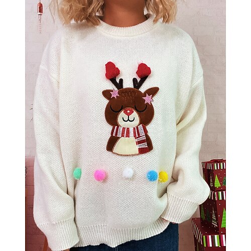 Per donna Felpa Maglione Pom Pom regalo di Natale Moda Renne di Natale A Coste Girocollo Lavorato a maglia Manica Lunga Top Regolari Maglia Natale All'aperto Ferie Nero Bianco Autunno Inverno