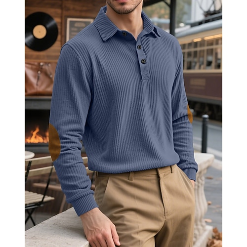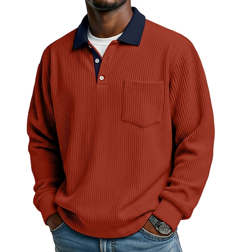 Per uomo Camicia di Velluto a Coste Polo Streetwear Casuale Bavero Manica Lunga Essenziale Moderno Blocco di colori Bottoni Primavera Autunno Vestibilità regolare Nero Blu marino Grigio chiaro
