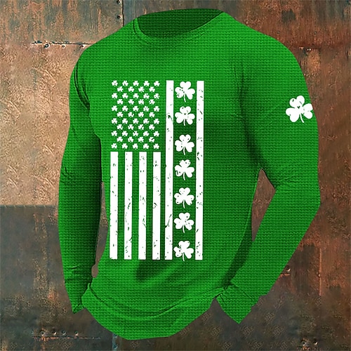Giorno di San Patrizio San Patrizio Festa di San Patrizio Per uomo Trifoglio Camicia a nido d'ape Maglietta Manica Lunga maglietta Girocollo Camicia Sport Moda Classico Quotidiano Vacanza Feste Nero
