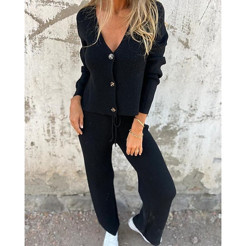 Per donna Cardigan lavorato a maglia Abiti da salotto Tinta unita Completo Abbigliamento Autunno Nero Blu Lavoro All'aperto Viaggio Leggero Di tendenza Manica Lunga Sport Abbigliamento sportivo