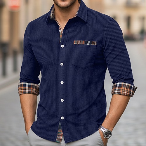Per uomo Camicia Camicia casual Camicia di Velluto a Coste Camicia con Bottoni Nero Blu marino Marrone Verde Kaki Manica Lunga Plaid Colletto Casuale Quotidiano Patchwork Abbigliamento Moda Moderno