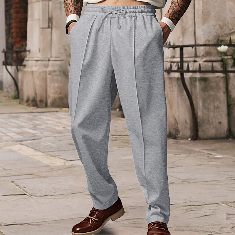 Men's Trousers Baggy Pants Casual Pants Drawstring Pocket Elastic Waist Plain Comfort Soft Casual Daily Outdoor Vacation Fashion Dark Brown Black