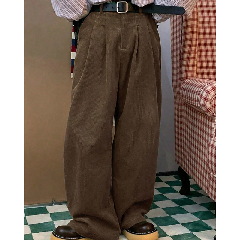 Men's Trousers Dress Pants Corduroy Pants Pocket Buttons Plain Comfort Formal Party Work Fashion Classic Style Black Dark Gray Micro-elastic